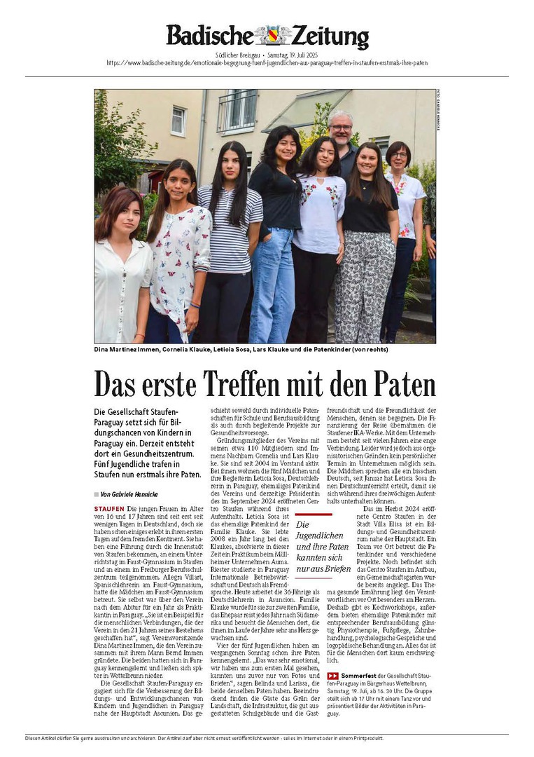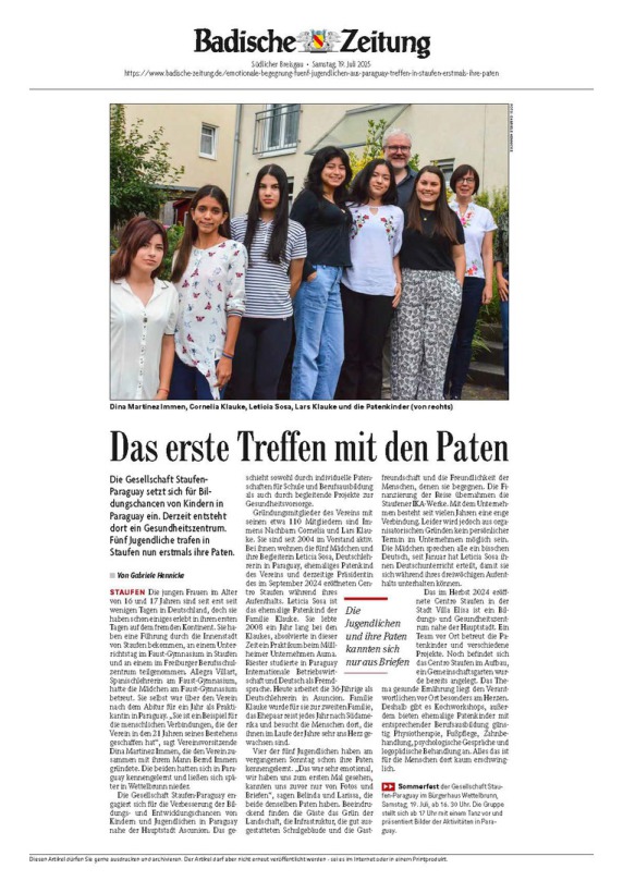 Im August und September 2025 reiste ein Teil des Vorstands unseres Vereins nach Paraguay. Dort fanden zahlreiche Begegnungen mit unseren Patenkindern statt. Bei den Treffen hatten die Jugendlichen und ihre Familien die Möglichkeit, ihre Erfahrungen zu teilen, Fragen zu stellen und ihre Anliegen vorzubringen.